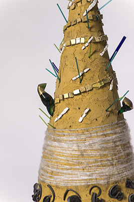1994 Picchio (dett.) acrilico, lana, vetro, oro, carbone, terracotta
